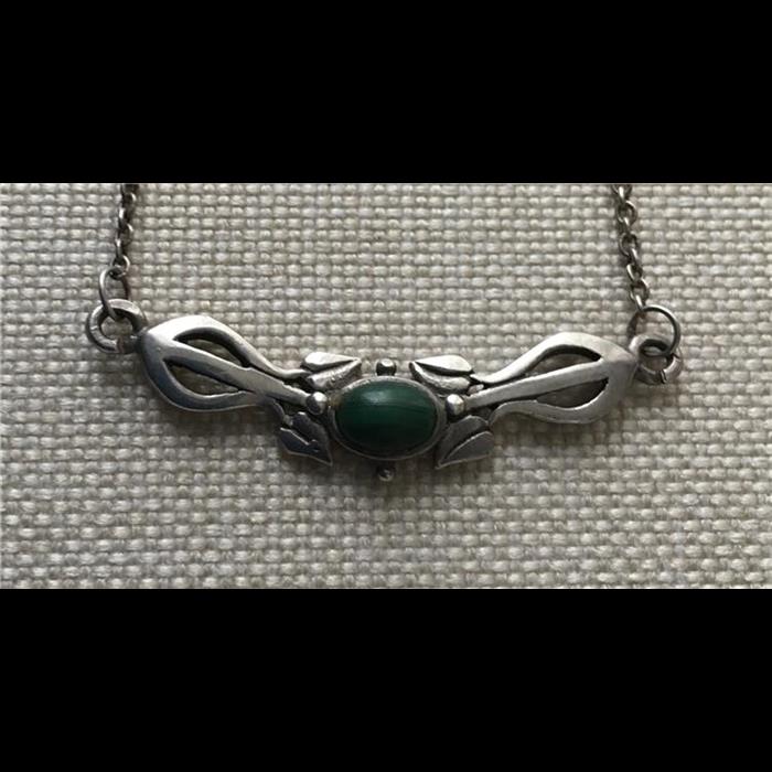 Sterling Silver (Hallmarked) and Agate Art Nouveau Style Necklace