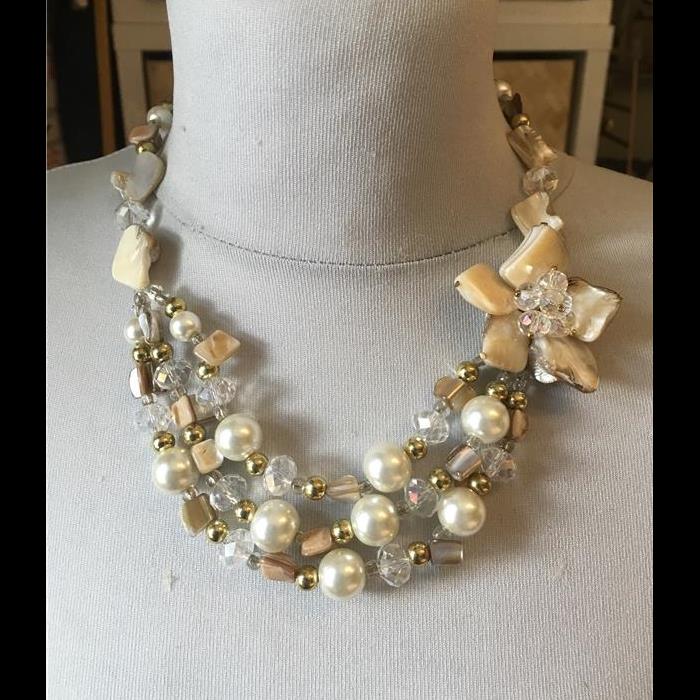 Shell/pearl/crystal flower Necklace