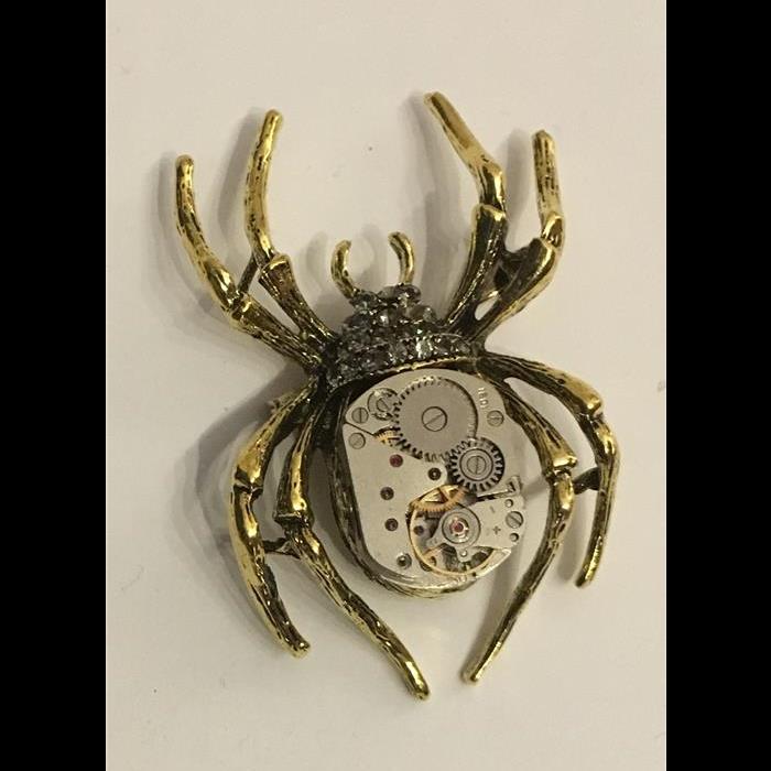 Brooch made with spider brooch and watch mechanism. Can be worn as a brooch or put on a chain and worn as a pendant.