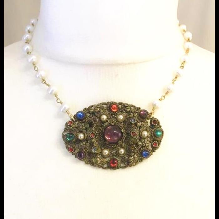 'Vintage Stones Brooch' freshwater pearl Necklace