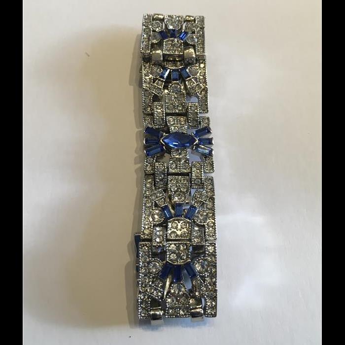 Gorgeous Art Deco Style Paste Blue Stone Bracelet/Cuff