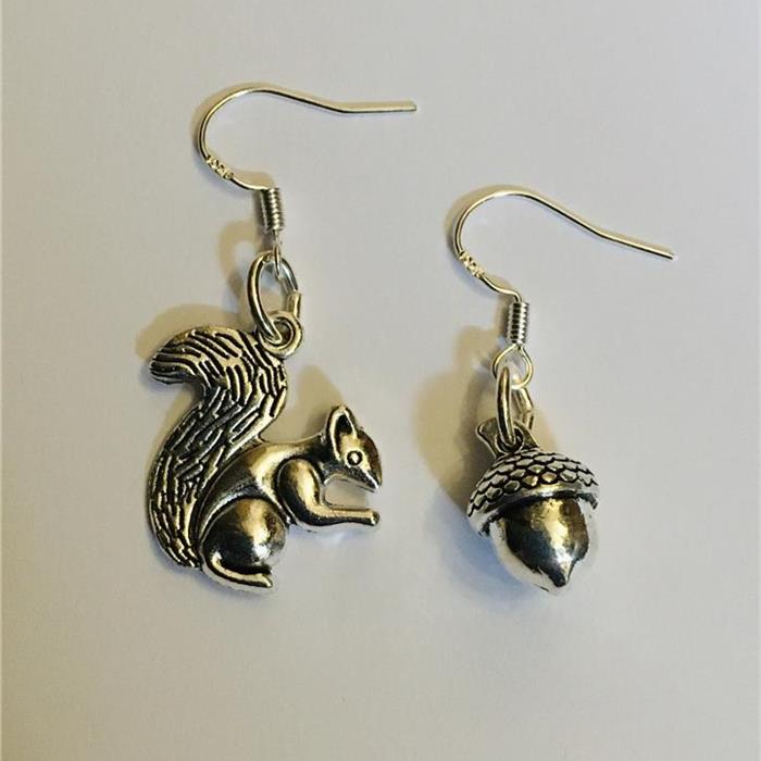 Earrings made with 1 x squirrel (height of squirrel charm 2cm) & 1 x nut charm. Sterling silver hooks for pierced ears.