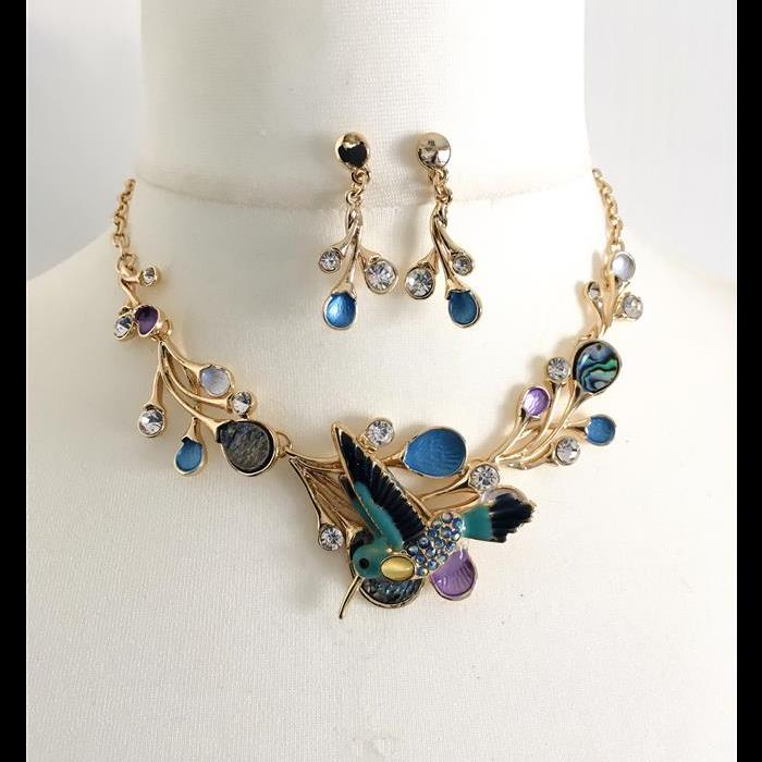 'Enamel Humming Bird' Necklace & Earrings Set