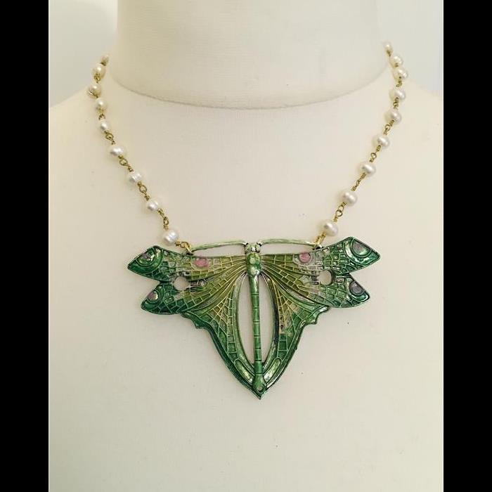 Lalique inspired Butterfly Nouveau pearl Necklace