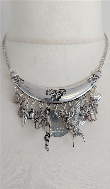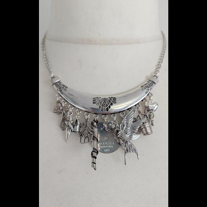 Necklace made with beautiful silver tone necklace and 13 assorted sterling silver and silver tone charms.
