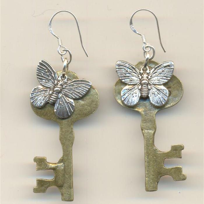 Butterfly/key earrings