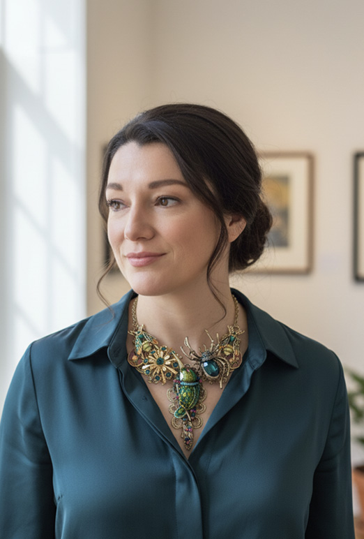 I established Eclectic Shock Jewellery in 2002 after graduating with a Ba (Hons) in Textile Design. Much of my degree show featured hand-knitted wire and beads as cuffs and collars on couture style garments. My first designs (that I started to sell) continued with the knitted wires which incorporated vintage jewellery and I exhibited at wedding fairs. This has developed over the years into my Eclectic Jewellery Designs and Statement pieces. I have a particular passion for Art Nouveau and Art Deco and my biggest source of inspiration is René Lalique.
